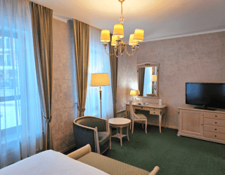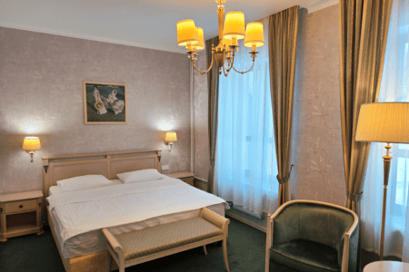 - размещение с питомцем до 10 кг и при наличии ветеринарного паспорта в номерах категории: Стандарт, Студия, Люкс, Делюкс. Для размещения с питомцем необходимо при заселении, на стойке приёма и размещения, оплатить проживание питомца: 1 500 рублей за сутки, и внести депозит в размере 5 000 рублей на случай материального ущерба, который вернётся после проживания, в случае его отсутствия.